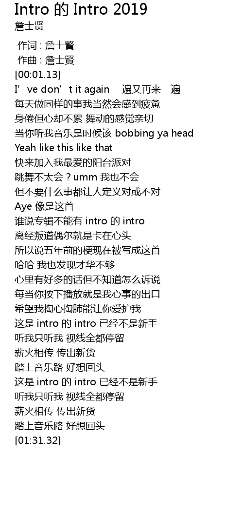 | [00:50.97] | shuí shuō zhuān jí bù néng yǒu intro de intro |