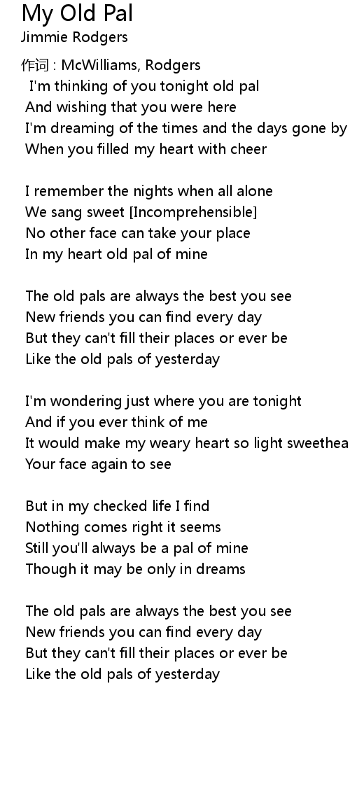| Song | My Old Pal |