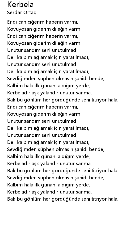 | [01:48.180] | Kerbelad r a k yaland r unutur sanma, |