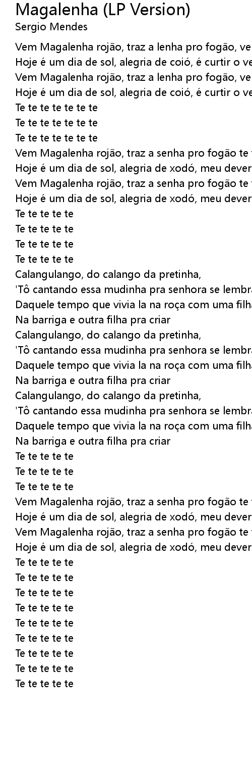 | [02:44.07] | Vem Magalenha rojão, traz a senha pro fogão te te te coração |