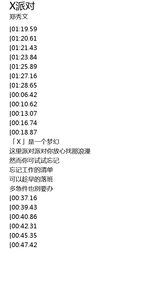 | [02:04.68][01:19.59] | 「X」是一个梦幻 |