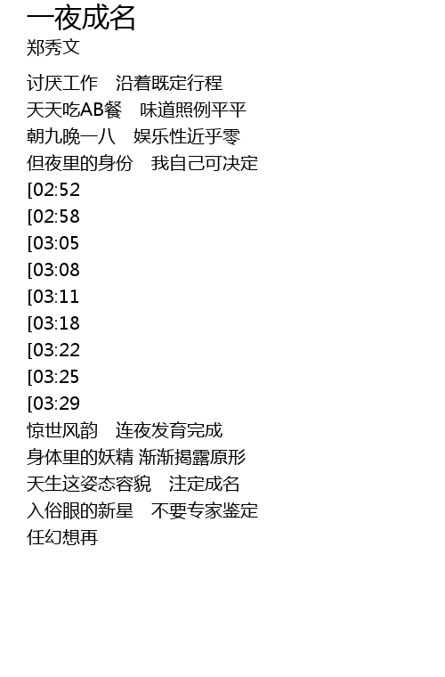 | Song | 一夜成名 |