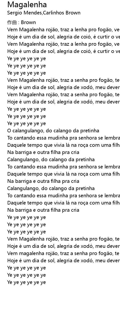 | Vem Magalenha rojão, traz a senha pro fogão, te te te coração | |