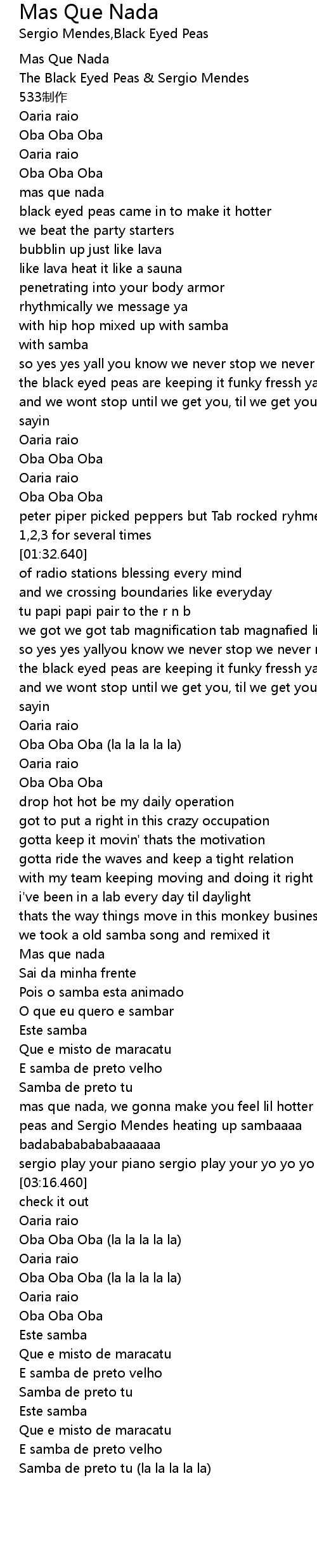 | [00:13.400] | The Black Eyed Peas & Sergio Mendes |