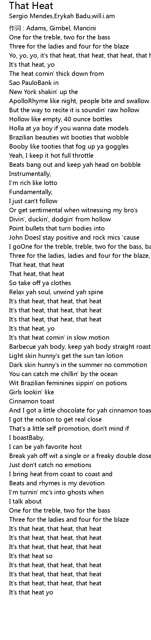 | It' s that heat, that heat, that heat | |
