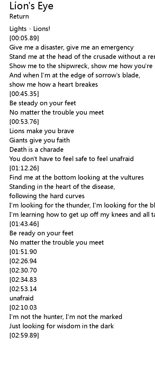 | [00:01.12] | Lights - Lions! |