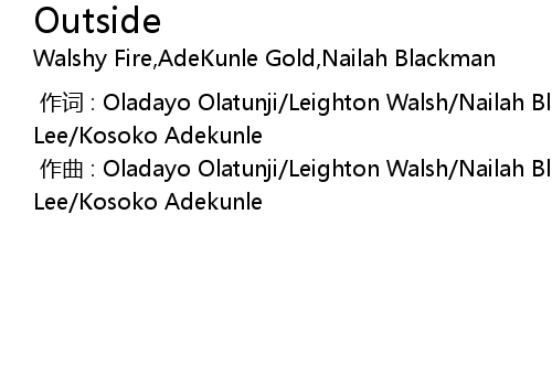 | [00:00.000] | 作词 : Oladayo Olatunji/Leighton Walsh/Nailah Blackman/Johnathan Lee/Kosoko Adekunle |