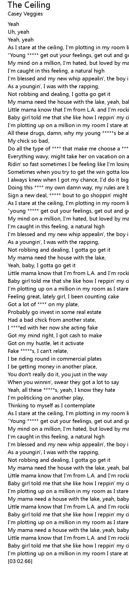 I'm plotting up on a million in my room as I stare at the ceiling |
