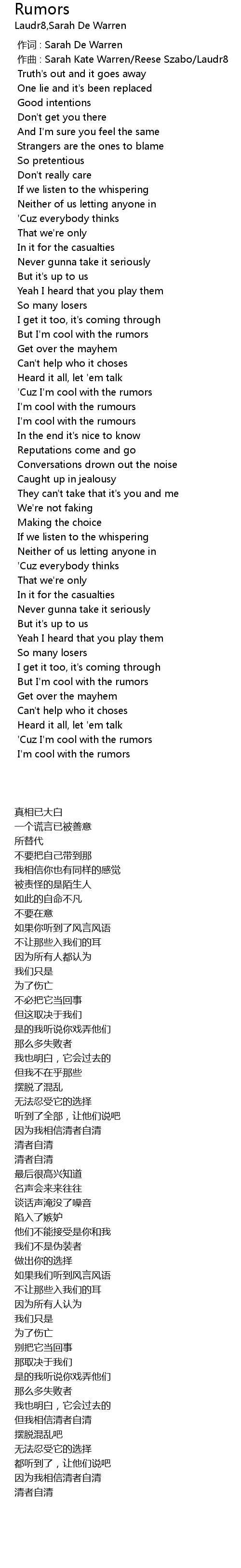 | [00:46.060] | But I' m cool with the rumors |