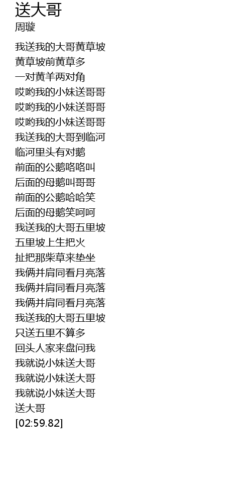 | [00:11.67] | 我送我的大哥黄草坡 |