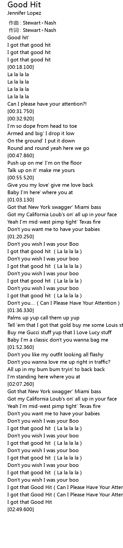 | [02:33.579] | I got that good hit (La la la la) |