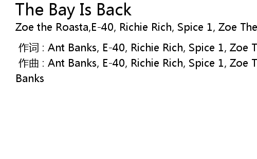 | [00:00.000] | 作词 : Ant Banks, E-40, Richie Rich, Spice 1, Zoe Tha Roasta |