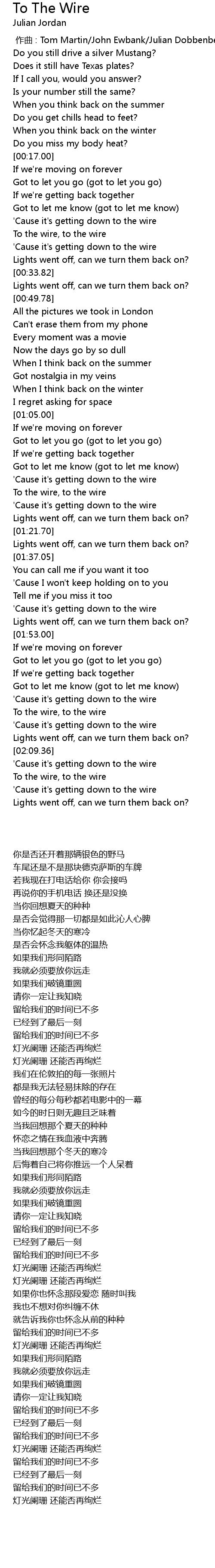 | [01:49.10] | 'Cause it's getting down to the wire |