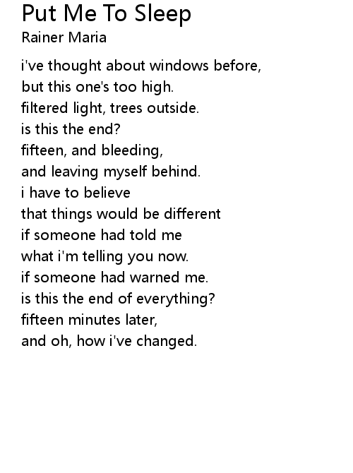 | Song | Put Me To Sleep |