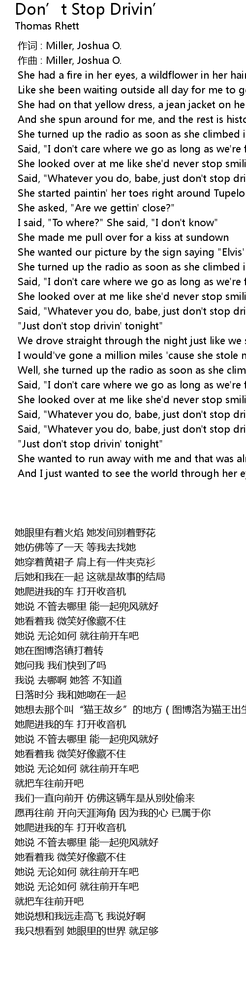 | [02:36.402] | "Just don't stop drivin' tonight" |