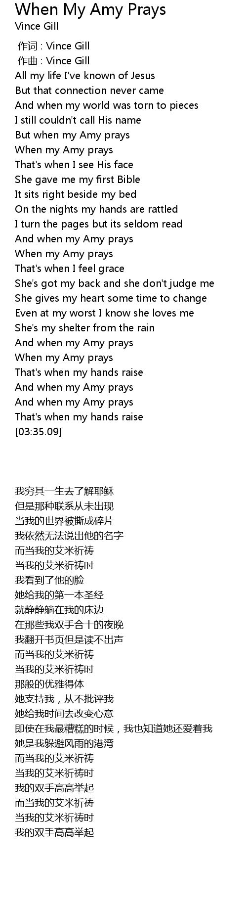 | [00:51.89] | When my Amy prays |