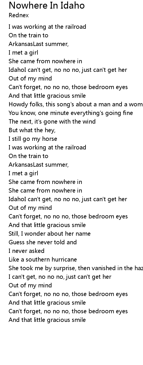IdahoI can't get, no no no, just can't get her |