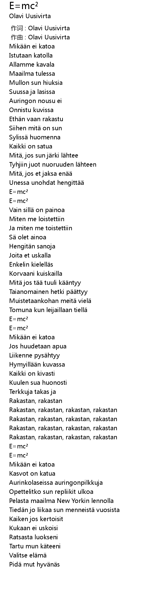 | [00:00.000] | 作词 : Olavi Uusivirta |