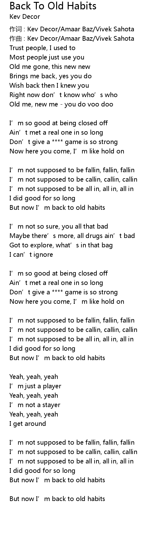 | But now I' m back to old habits |
