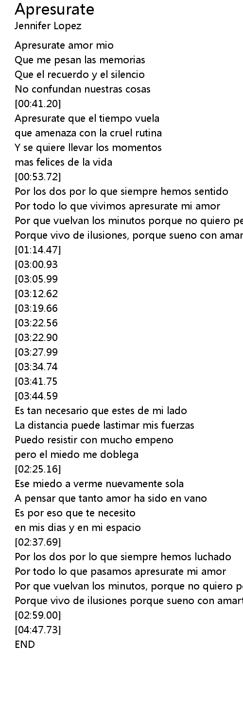Por todo lo que vivimos apresurate mi amor |