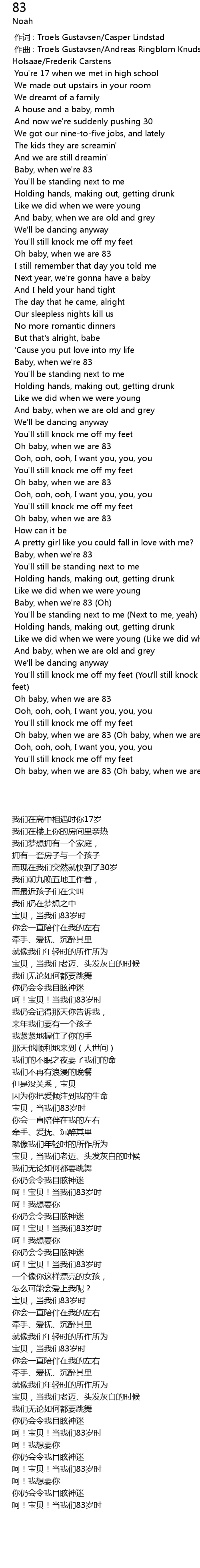 | [03:03.907] | Oh baby, when we are 83 Oh baby, when we are 83 |