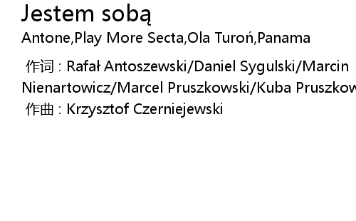 | [00:00.000] | 作词 : Rafał Antoszewski/Daniel Sygulski/Marcin Nienartowicz/Marcel Pruszkowski/Kuba Pruszkowski/Ola Turoń/Łukasz Tarnawski |