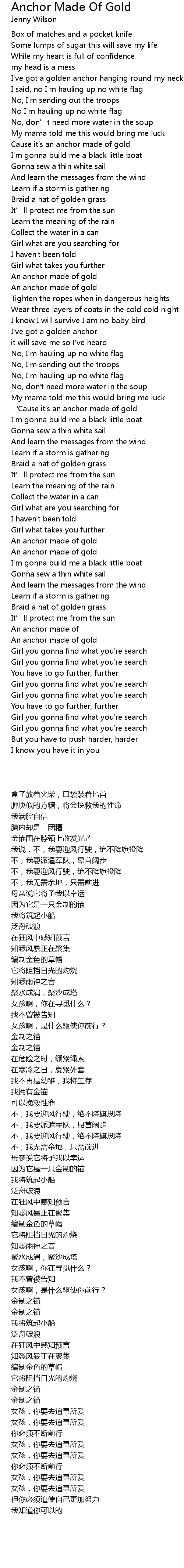 | [00:26.18] | Cause it's an anchor made of gold |