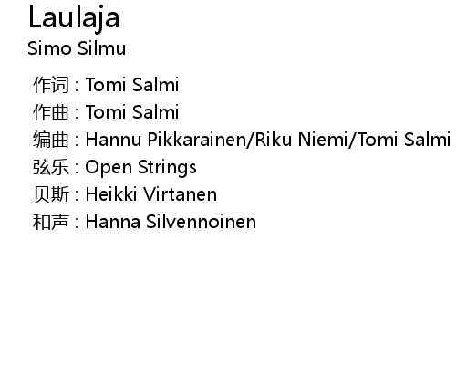 | [00:00.000] | 和声 : Hanna Silvennoinen |