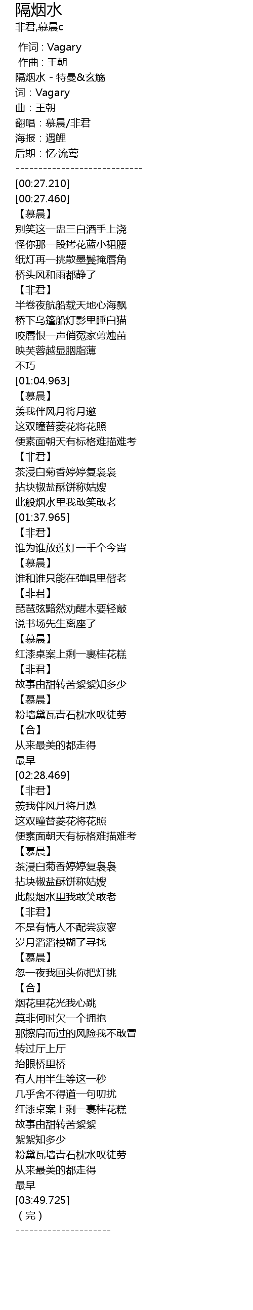 | [00:12.709] | 隔烟水 - 特曼&玄觞 |