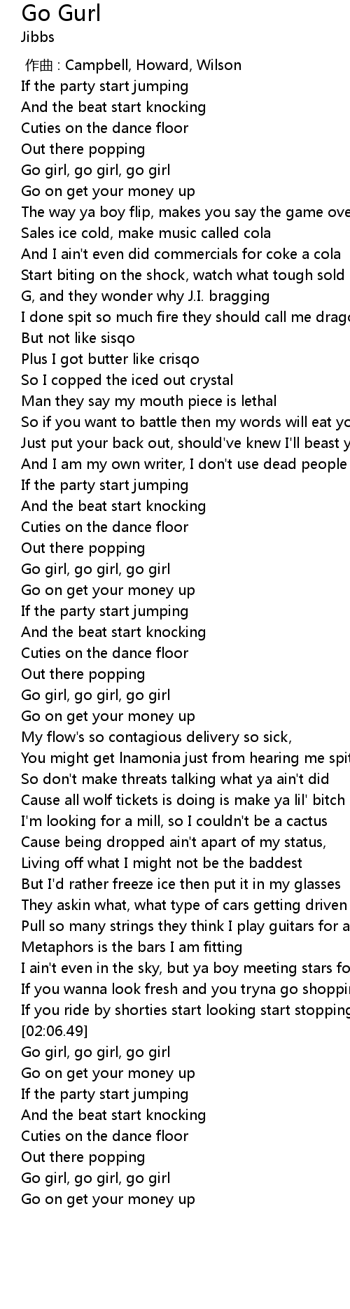 | [01:06.09] | Go girl, go girl, go girl |