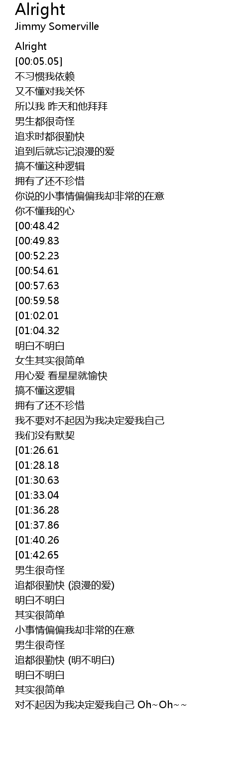 | [02:24.35][00:48.42] | I say alright |