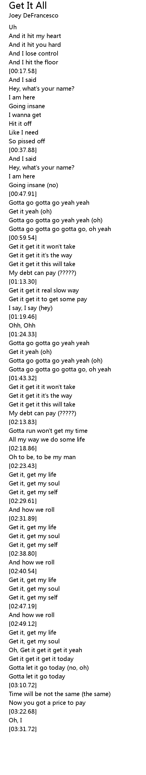 Get it, get my life |