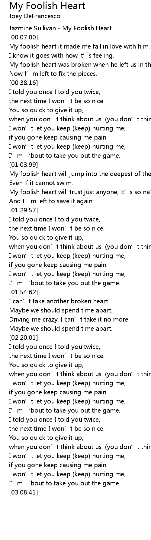 | [00:02.00] | Jazmine Sullivan My Foolish Heart |