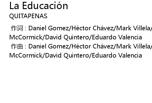 | [00:00.000] | 作词 : Daniel Gomez/Héctor Chávez/Mark Villela/Ivan McCormick/David Quintero/Eduardo Valencia |