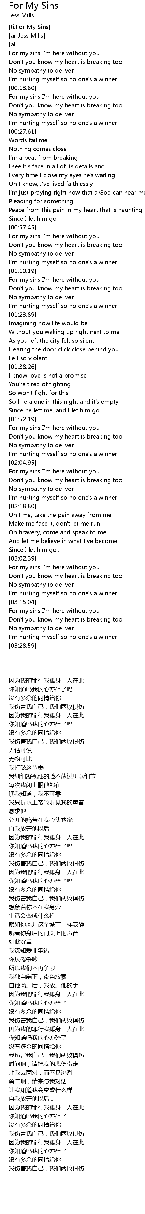 [ti:For My Sins] |