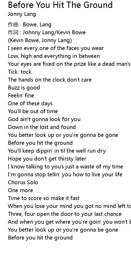 | Song | Before You Hit The Ground |