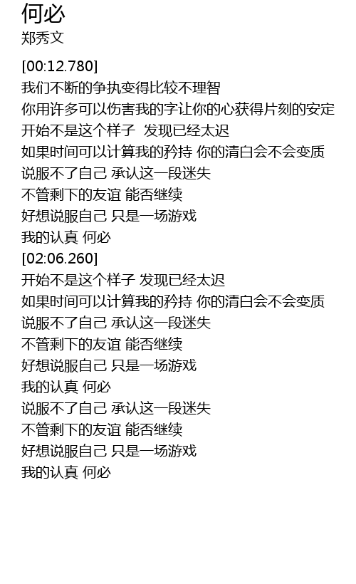 | [02:56.610] | 我的认真 何必 |