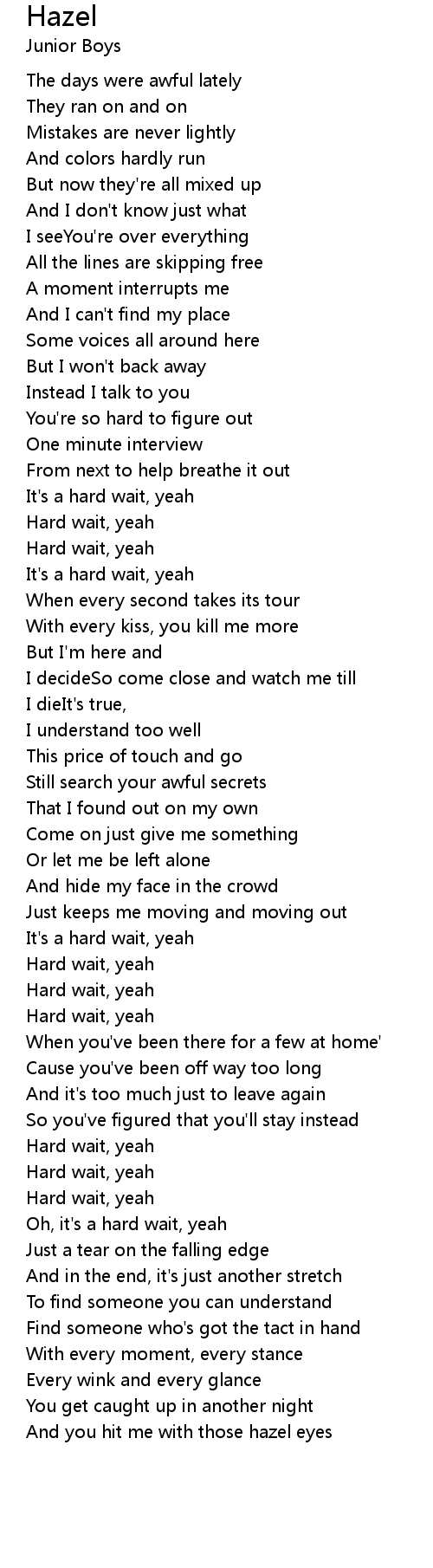 Oh, it's a hard wait, yeah |