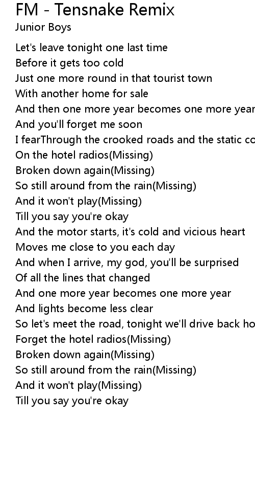 FM - Tensnake Remix Lyrics