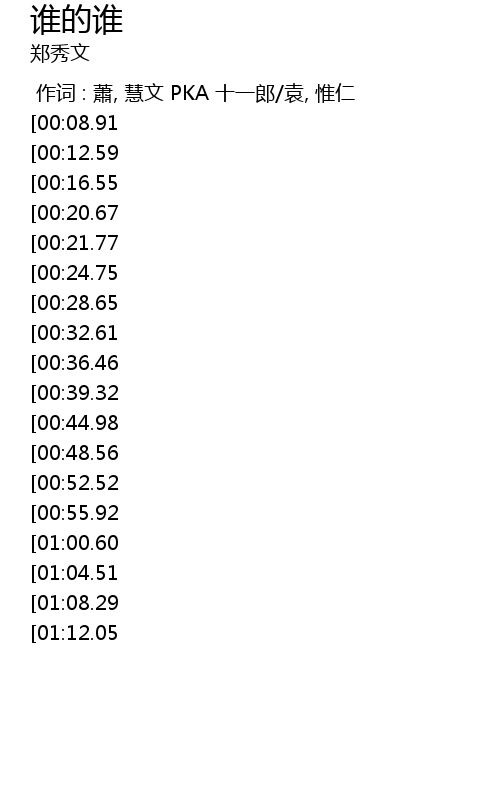 | [02:55.00][00:08.91] | 总听你说我是谁的谁 |