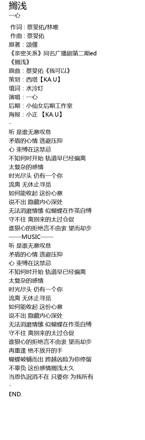 | [00:03.956] | 《亲密关系》同名广播剧第二期ed |