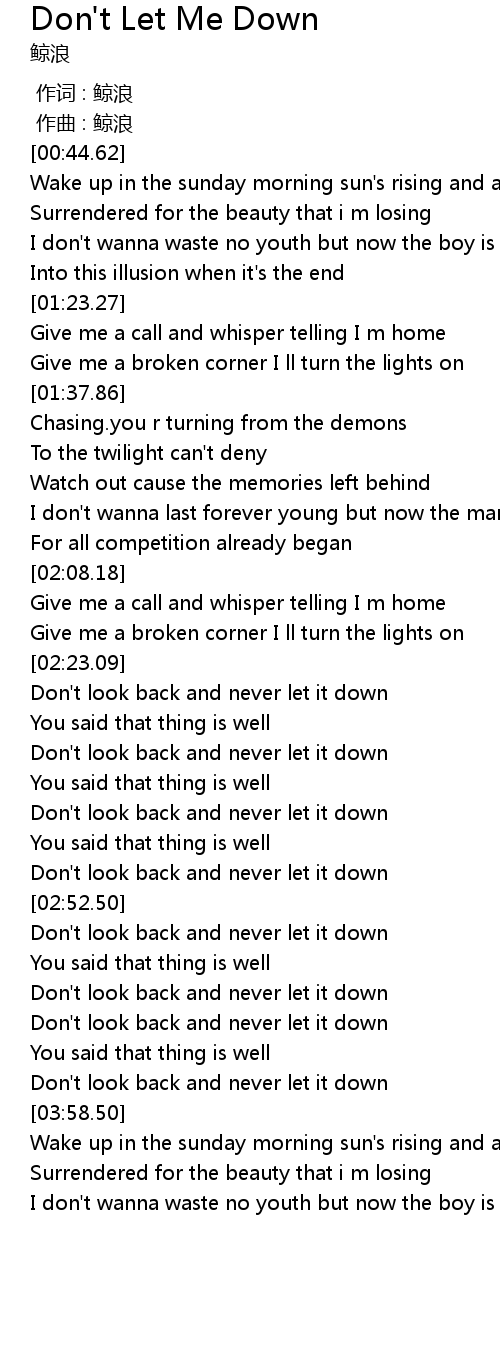 | [00:54.81] | Wake up in the sunday morning sun's rising and all i ve been |