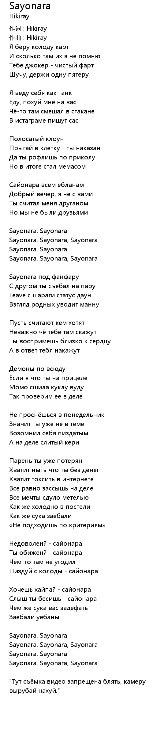 Слыш ты бесишь - сайонара |