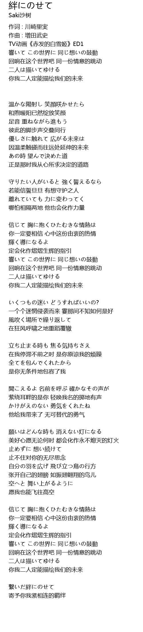| 作词 : 川崎里実 | |