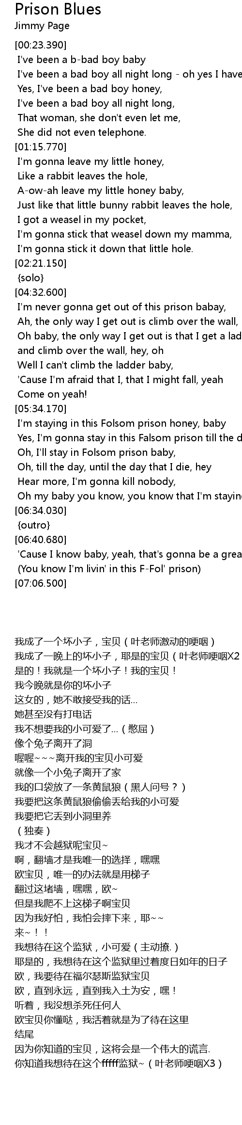 I'm staying in this Folsom prison honey, baby |