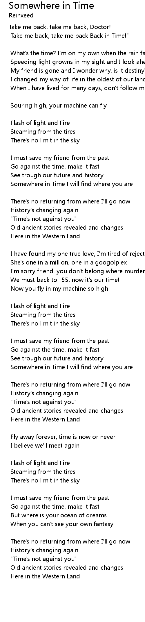 Somewhere in Time I will find where you are |