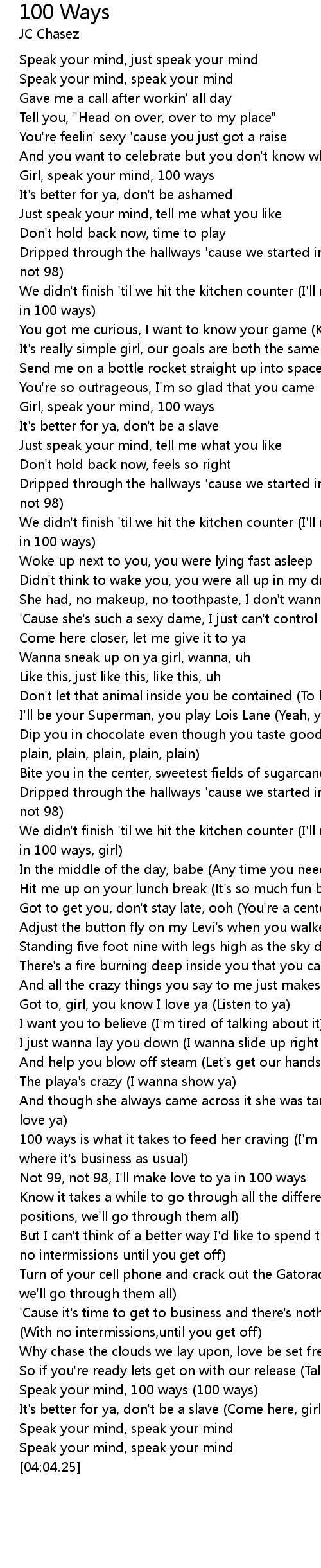 Not 99, not 98, I'll make love to ya in 100 ways |