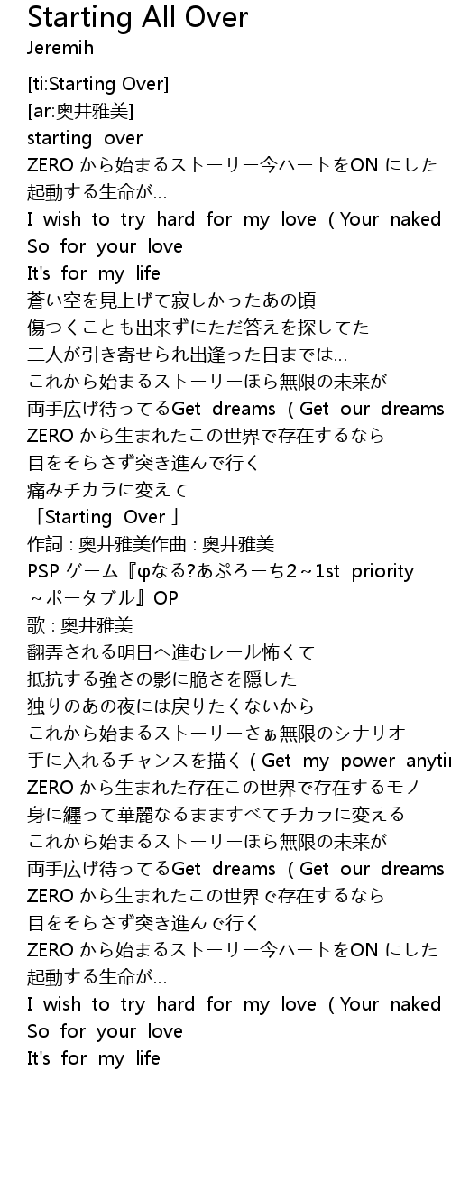| [01:40.36] | Starting Over |