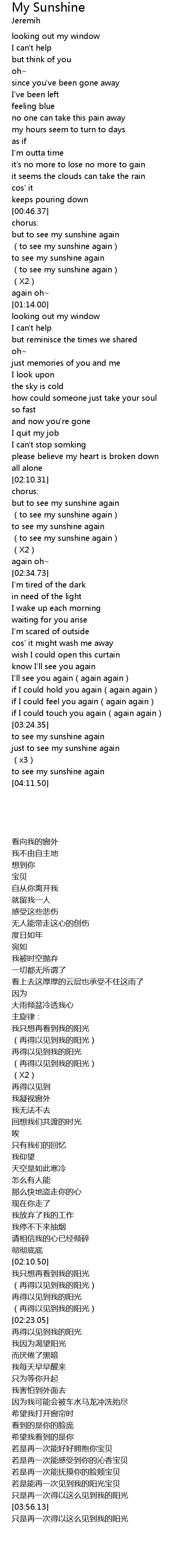 | [00:46.84] | but to see my sunshine again |