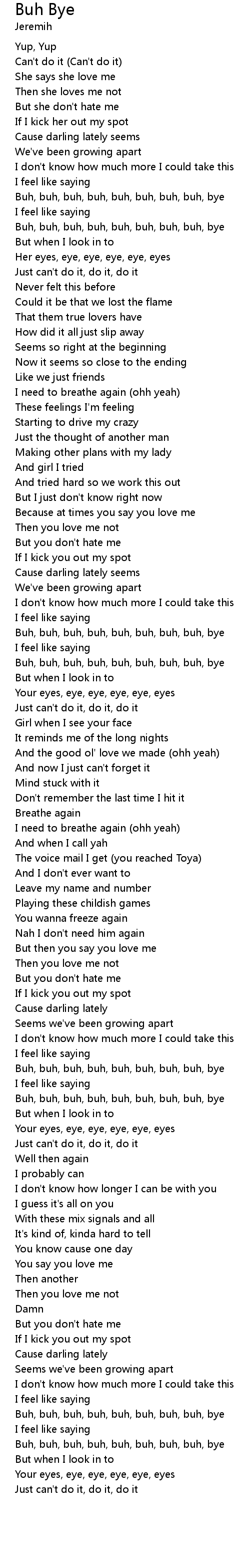 | [00:34.84] | Buh, buh, buh, buh, buh, buh, buh, buh, bye |